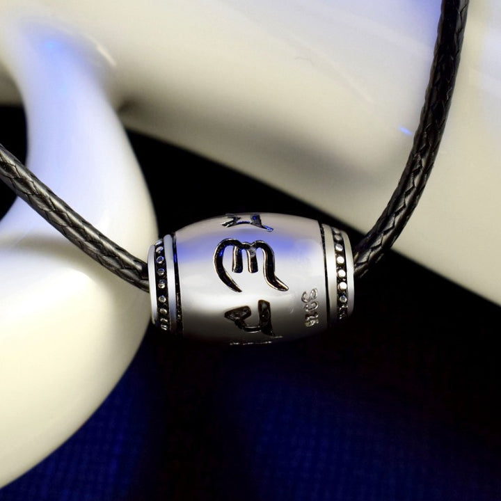 吊墜表面刻有六字真言, 唵嘛呢唄美吽。也稱為 六字真言,相傳用六個音節概括了佛陀的所有教誨。