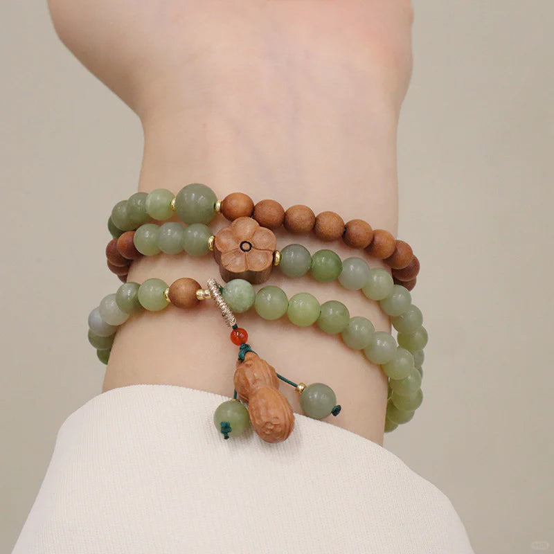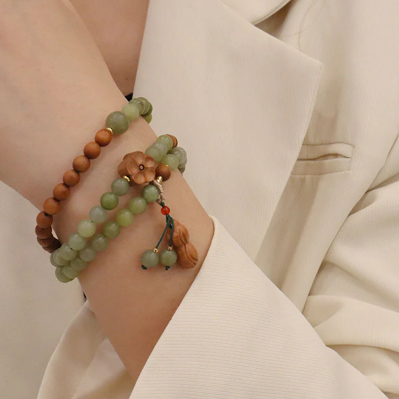 檀香的優雅香味有助於緩解壓力,使人保持平和的心態。同時它的珍貴和長壽也像徵著富貴和長壽。檀香被稱為財富之樹,代表金錢和好運。在某些文化中,檀香還被視為能夠避邪並保護佩戴者免受邪惡侵害。檀香具有強大的舒緩心靈和增強能量的功效。當心中充滿煩惱或因壓力而感到困惑時,檀香的能量可以幫助理清雜亂的思緒,使心靈恢復清明。